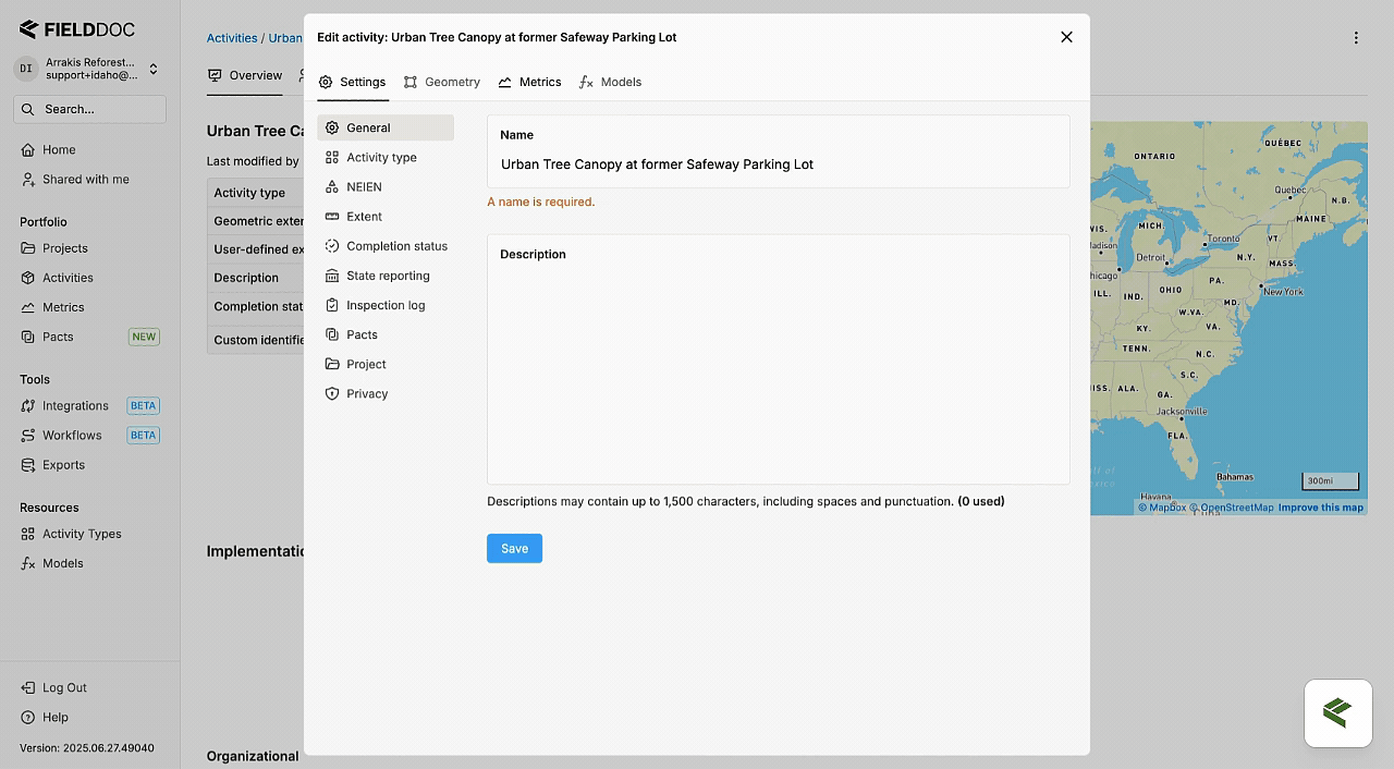 * If you select an activity, FieldDoc adds the geometry to it.